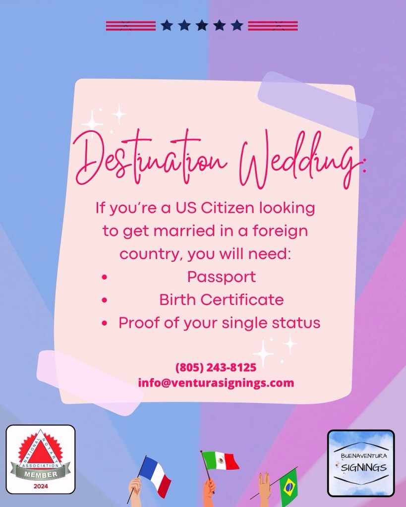 Moreover, depending on which country the couple will be getting married in, these documents may need to be authenticated at the U.S. Department of Justice and then legalized at the embassy of the country in which they’ll be used.